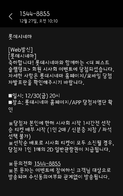 롯데시네마에서 당첨이 되어부렀다!!