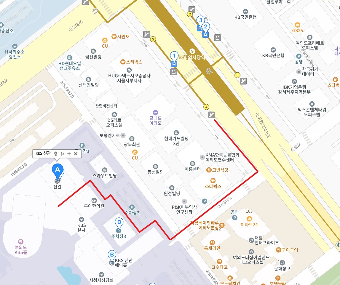 걸어서 약 2~3분 정도면 KBS에 도착합니다