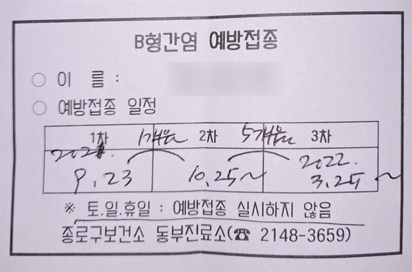 이렇게 B형 간염 예방 접종을 하게 됨